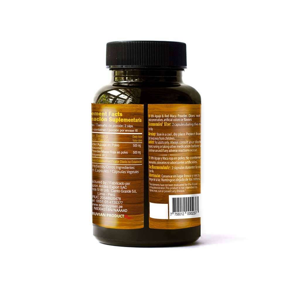 Aguaje and red maca capsules (120 x 500 mg)