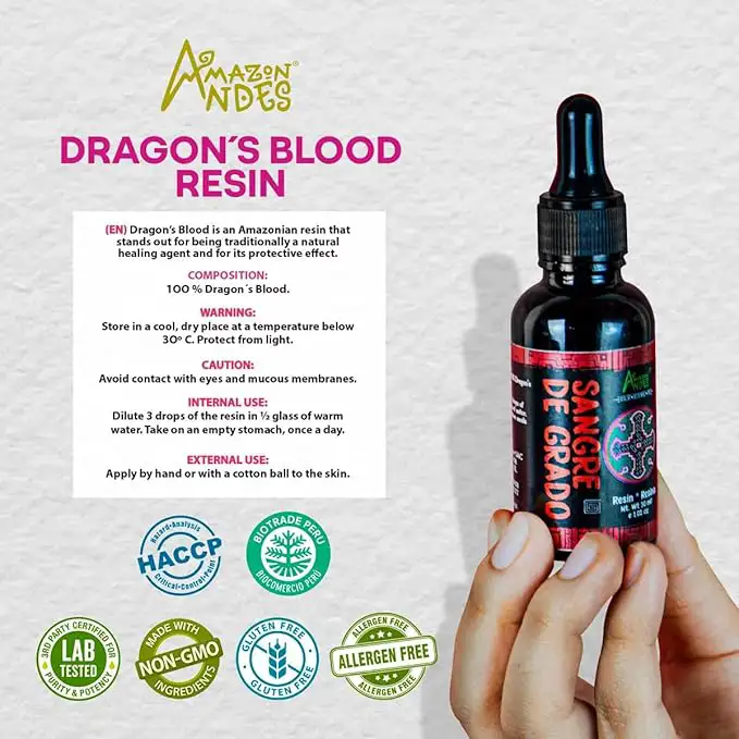 • ✅DRAGON’S BLOOD RESIGN: AMAZON ANDES Dragon’s Blood resin is ethically obtained and sourced. Wild crafted from Croton lechleri trees from the Peruvian Amazon. The resin is red, but it permanently stains clothing.